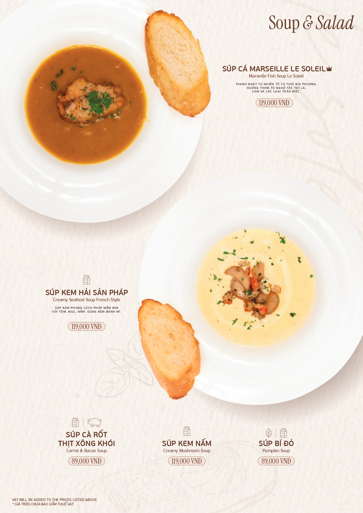 Tận hưởng hương vị ẩm thực Pháp và châu Âu trong không gian ấm cúng và sang trọng.