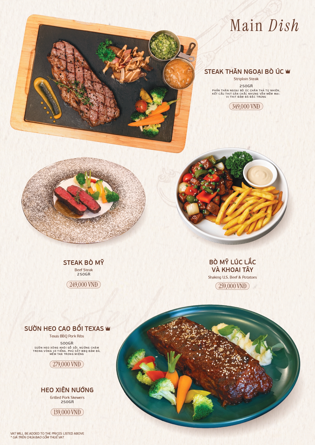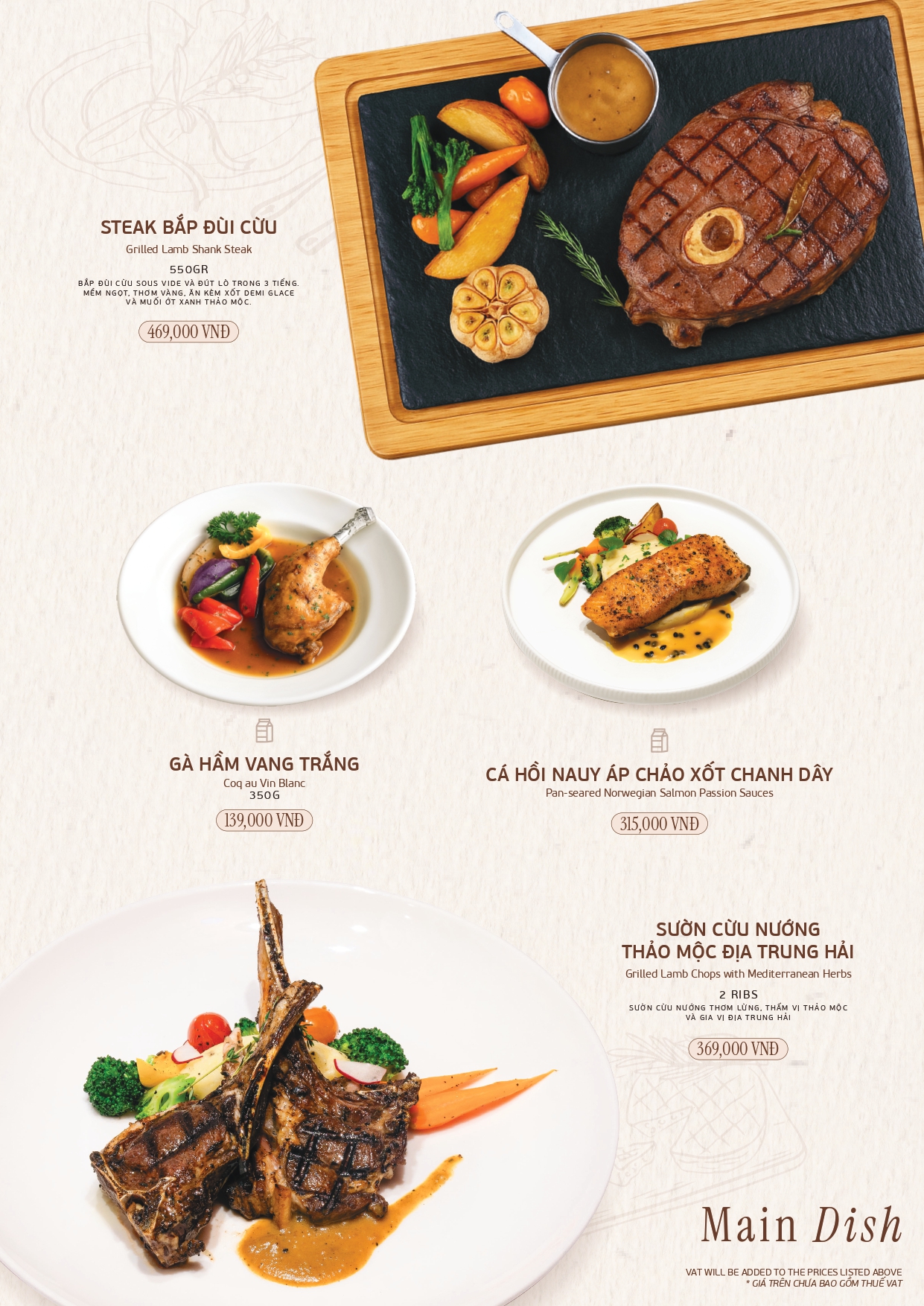 Khám phá thực đơn À La Carte với những món ăn tinh tế được chế biến từ nguyên liệu tươi ngon.